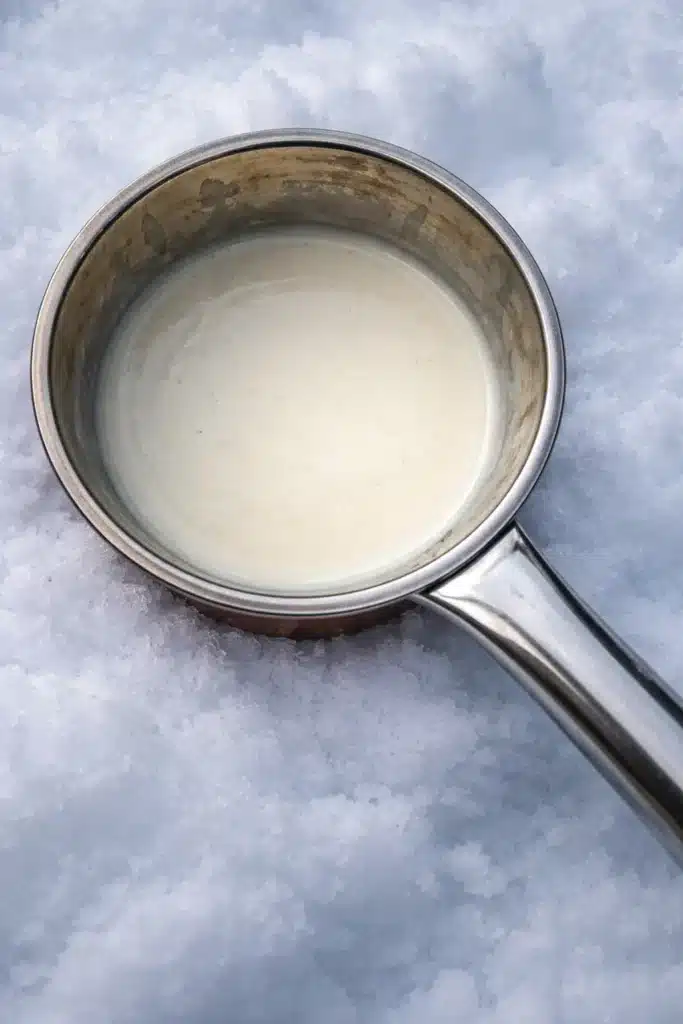 Set the chilled metal pan into salted snow so the base starts cooling fast.